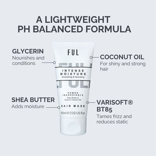 Shop expertly formulated hair mask treatments by FUL London, created to restore hydration, reverse damage, and soothe scalp stress with every use. Designed for those dealing with dryness, brittleness, frizz or post-colour stress, each deep conditioning hair mask in our range delivers salon-level nourishment in just minutes. Whether you're seeking a hair mask for dry hair that restores bounce, or a hair mask for damaged hair to reinforce weakened strands, FUL London's ingredient-led blends offer targeted results. Our hydrating hair mask formulas combine rich actives like Shea Butter, Coconut Oil and VARISOFT® BT85 to deeply penetrate the hair shaft and lock in moisture from root to tip.