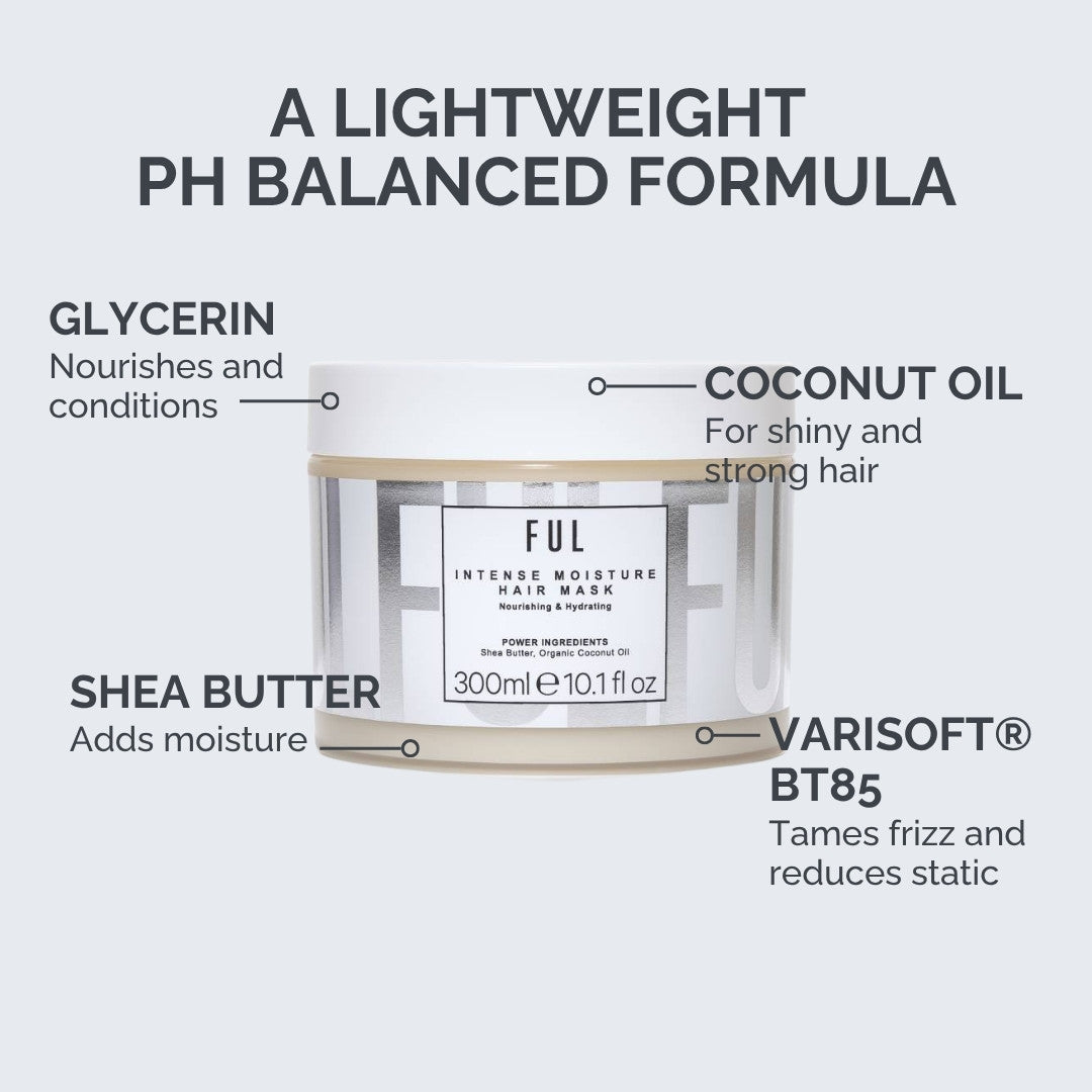 Our pH balanced Intense Moisture Hair Mask locks in moisture, adds shine and retains natural oils in your hair.